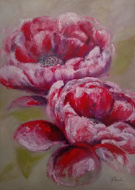 Par exemple, si je souhaite changer de travail, je vais activer la zone de la carrière. C’est une zone d’eau et je vais donc apporter de l’eau sous la forme d’un aquarium ou d’un vase avec un bambou. Si je ne peux ou ne veux pas poser un aquarium, je peux activer ma zone avec des représentations de l’eau: paysage de mer, de lac, cascade, rivière, neige. Je peux également poser des coquillages ou un filet de pêche. Autre exemple, je souhaite améliorer les relations au sein de ma famille. Je vais disposer mes photos de famille sur un meuble ou dans un cadre en bois au sein de ma zone famille. Le tableau représentant les 2 pivoines est posé dans ma chambre pour activer ma zone relations et amour. Il a été peint par Arielle, artiste peintre et consultante Feng Shui.